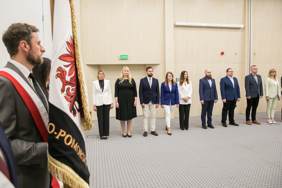 „Ślubuję uroczyście, że na zajmowanym stanowisku będę służyć państwu polskiemu i wspólnocie samorządowej, przestrzegać porządku prawnego i wykonywać sumiennie powierzone mi zadania” – to słowa ślubowania, które złożyło w piątek (16 czerwca) osiemnaścioro pracowników Urzędu Marszałkowskiego Województwa Kujawsko-Pomorskiego, kończących służbę przygotowawczą.