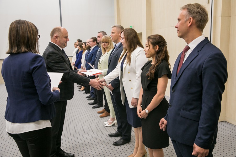 – Jako urzędnicy mamy odpowiedzialną misję – służymy mieszkańcom regionu. Wierzę, że sumiennie wypełniając powierzone obowiązki sprostają państwo wszystkim zawodowym wyzwaniom. Życzę wielu sukcesów i satysfakcji w karierze zawodowej – mówił marszałek Piotr Całbecki