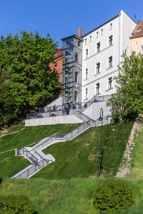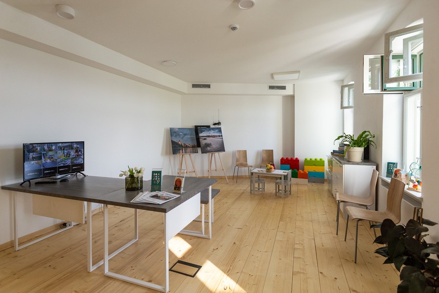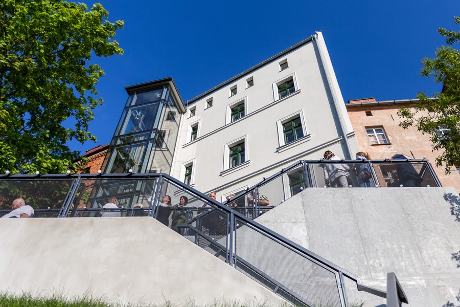 Inwestycja objęła kompleksową modernizację zabytkowego spichlerza nr 57 (drugi budynek od strony Góry Zamkowej). W obiekcie powstało centrum aktywności społecznej. Lokalni społecznicy mogą korzystać m.in. z pomieszczeń biurowych i sal konferencyjnych. W obiekcie będą odbywały się dyżury specjalistów, m.in. doradztwo prawne i księgowe. Z myślą o działaniach integracyjnych funkcjonuje kawiarnia społeczna, w której organizowane będą także wystawy prac artystycznych. Widok na Wisłę można podziwiać z dwupoziomowego tarasu, zainstalowana została również zewnętrzna panoramiczna winda.