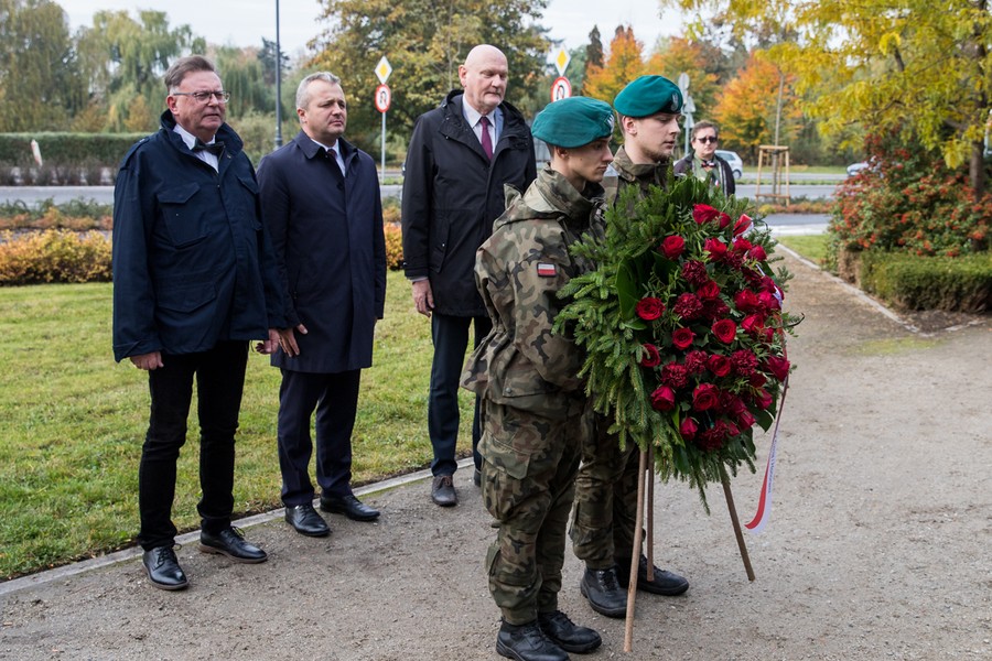 We wtorek (19 października) w południe pod pomnikiem księdza Popiełuszki przy alei Jana Pawła II w Toruniu wiązankę złożyli wicemarszałek Zbigniew Ostrowski, wojewoda Mikołaj Bogdanowicz i prezydent Torunia Michał Zaleski.