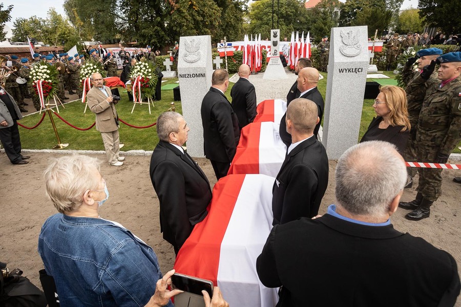 – Komunistycznym władzom chodziło o to, by po tych ludziach zaginął słuch, a miejsca ich spoczynku na zawsze pozostały tajemnicą. Aby przyprawić im miano bandytów, którzy kierowali się niskimi pobudkami, którzy działali w osamotnieniu. Nie udało się im! Po kilkudziesięciu latach od tamtych tragicznych wydarzeń nasi bohaterowie będą dziś pochowani z honorami wojskowymi. Dzisiaj ich walka się zakończy. Byli wyklęci. Pozostali niezłomni! Cześć ich pamięci! Chwała Bohaterom! – zakończył swoje wystąpienie wicemarszałek Zbigniew Ostrowski.
