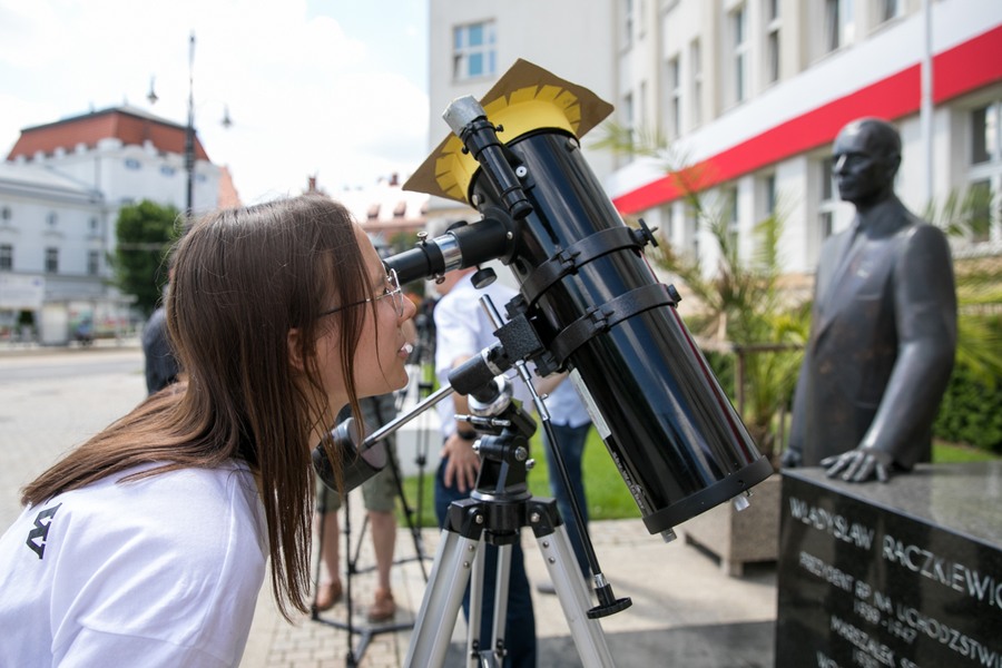 Wczoraj (10 czerwca) byliśmy świadkami pierwszego od ponad sześciu lat widocznego w Polsce częściowego zaćmienia Słońca. Przed Urzędem Marszałkowskim stanął teleskop, za pośrednictwem którego pod okiem koordynatorów Astrobazy w Unisławiu (powiat chełmiński), można było obserwować to wyjątkowe zjawisko. Na pokazy zaprosiły astrobazy na terenie całego województwa.