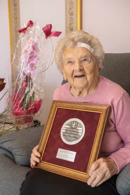 Pełna pozytywnej energii, uśmiechnięta i żywiołowa mieszkanka powiatu inowrocławskiego Teresa Kiełtyka świętowała setne urodziny. Z tej okazji z dostojną jubilatką spotkała się przewodnicząca sejmiku województwa Elżbieta Piniewska. Jubilatka dołączyła do grona uhonorowanych marszałkowskim odznaczeniem medal Unitas Durat Palatinatus Cuiaviano Pomeraniensis.