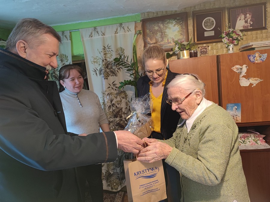 Wykonane ręcznie pierniki, kosmetyki z Uzdrowiska Ciechocinek i kartki ze świątecznymi życzeniami wykonane przez podopiecznych Warsztatów Terapii Zajęciowej znajdują się w paczkach przygotowanych przez Urząd Marszałkowski dla najstarszych mieszkańców województwa kujawsko-pomorskiego. Przed świętami wielkanocne upominki trafią do kilkudziesięciu osób w wieku stu lat i starszych. Część z nich wręczyli osobiście przewodnicząca sejmiku Elżbieta Piniewska, członek zarządu Aneta Jędrzejewska i radny województwa Stanisław Pawlak.
