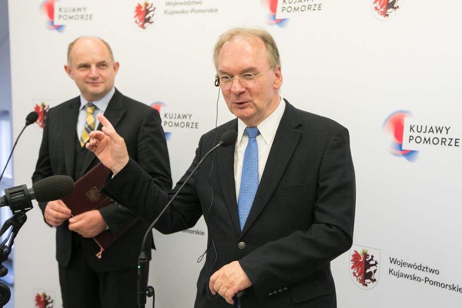 W Kujawsko-Pomorskiem gościł z oficjalną wizytą premier niemieckiego landu Saksonia-Anhalt Reiner Haseloff, któremu towarzyszyli małżonka Gabriele Haseloff i rzecznik rządu Matthias Schuppe, a także niemiecka konsul generalna w Gdańsku Cornelia Pieper. Spotkanie z marszałkiem Piotrem Całbeckim odbyło się w miniony piątek (13 lipca) w Urzędzie Marszałkowskim. Wśród interesujących obie nasze strony kierunków współpracy są m. in. kultura, nauka i technologie, a także regionalne doświadczenia związane ze wsparciem dla biznesu.