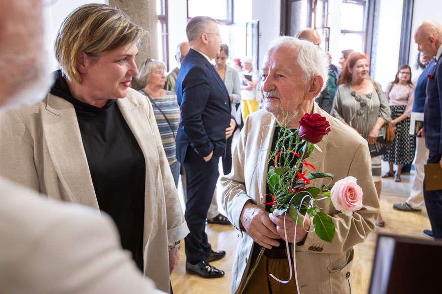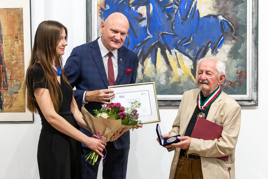 W piątek (7 lipca) w Dworze Artusa odbył się wernisaż prac związanego z Toruniem mistrza witrażoznawstwa i znakomitego malarza Władysława Kozioła. Marszałek Piotr Całbecki uhonorował artystę medalem Unitas Durat Palatinatus Cuiaviano-Pomeraniensis. Podczas spotkania twórca odebrał również Złoty Medal „Zasłużony Kulturze Gloria Artis” i medal pamiątkowy Roku Mikołaja Kopernika 1473-2023. Wystawa czynna jest do 7 sierpnia. Zapraszamy do obejrzenia fotorelacji z wydarzenia.