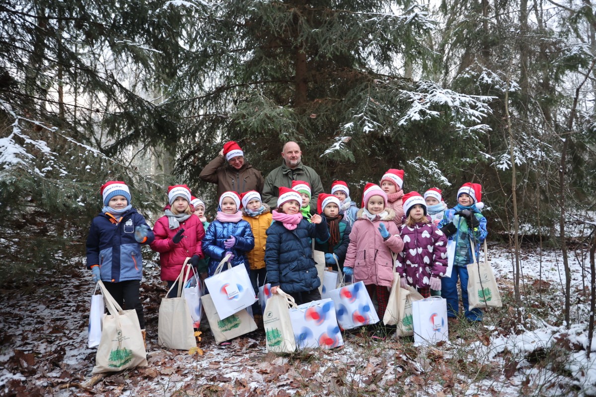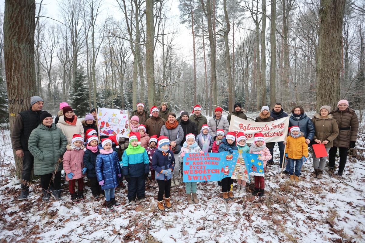 W lesie pod Raciniewem marszałkowi Piotrowi Całbeckiemu towarzyszyli dziś uczniowie Szkoły Podstawowej w Grzybnie, Zespołu Szkół w Unisławiu, Szkoły Podstawowej w Kokocku i przedszkolaki z Bruków Unisławskich oraz ich nauczyciele, a także przedstawiciele Nadleśnictwa Toruń.