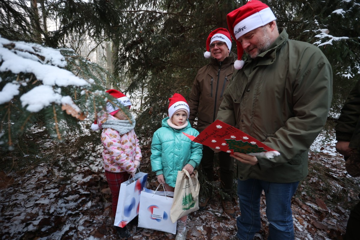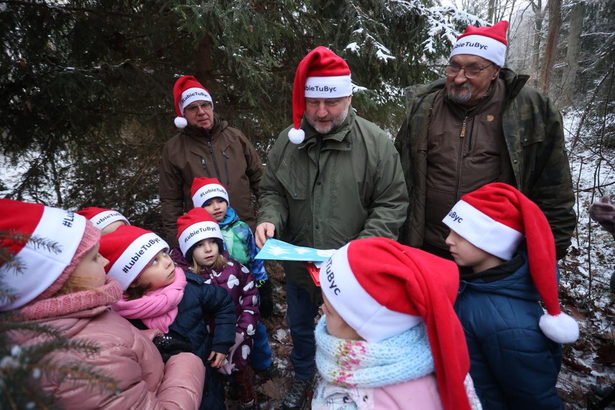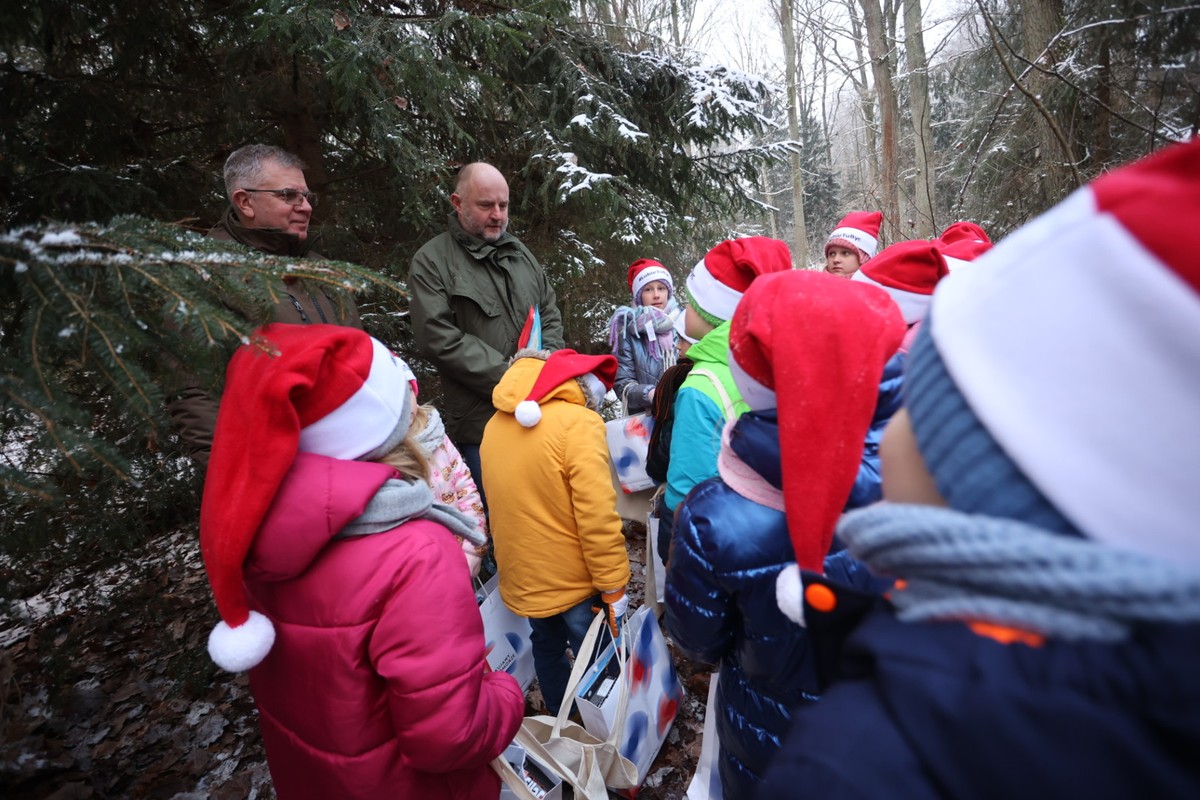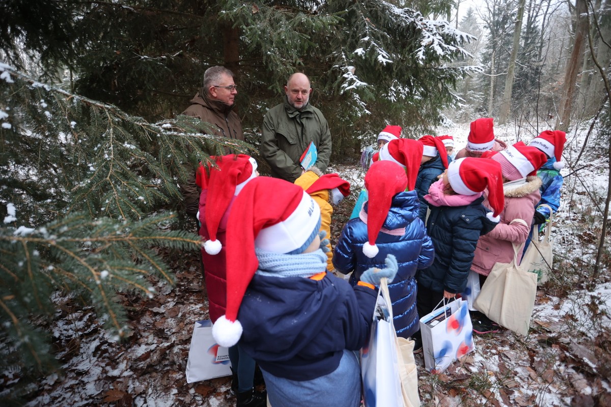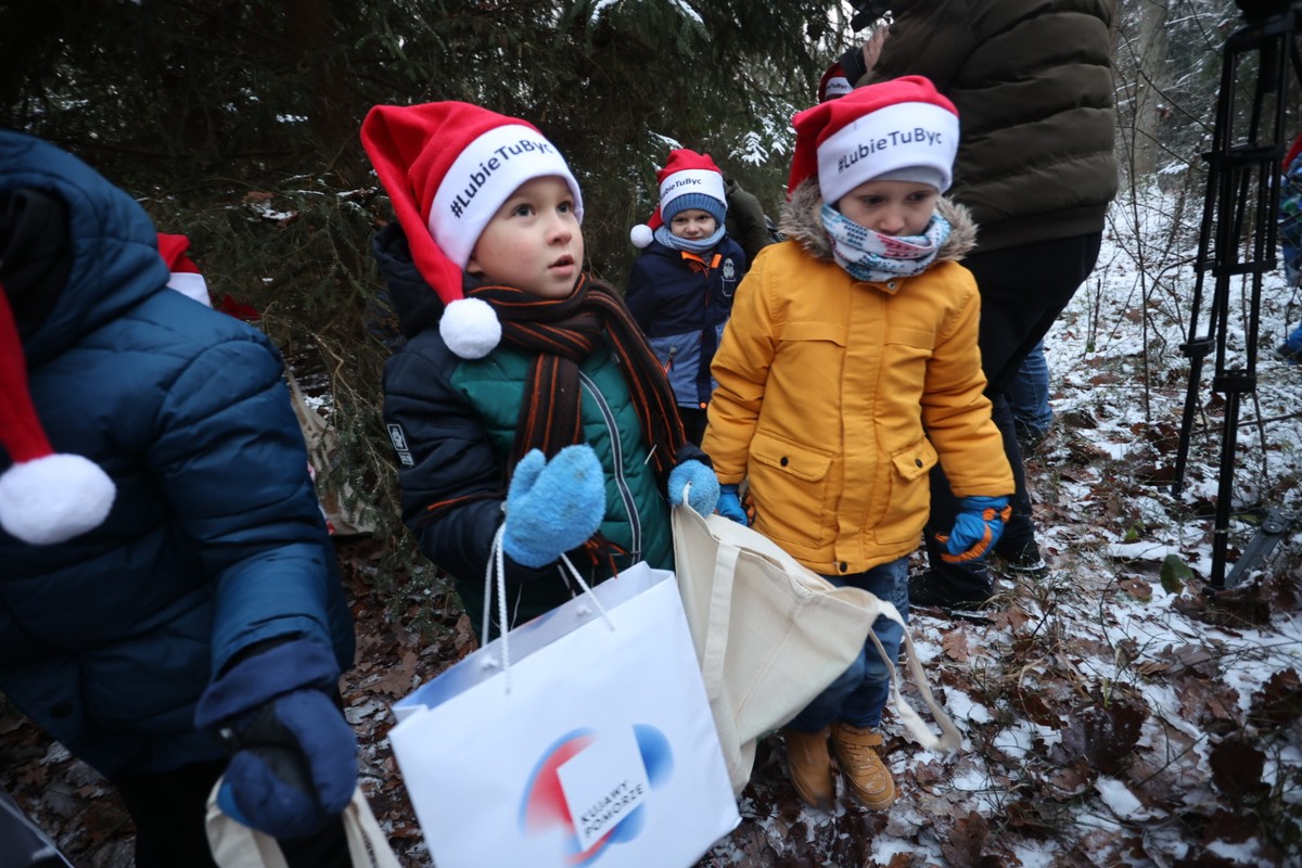 - Marszałkowi Piotrowi Całbeckiemu podczas wyboru choinki towarzyszyły dzieci z gminy Unisław, fot. Mikołaj Kuras dla UWMKP