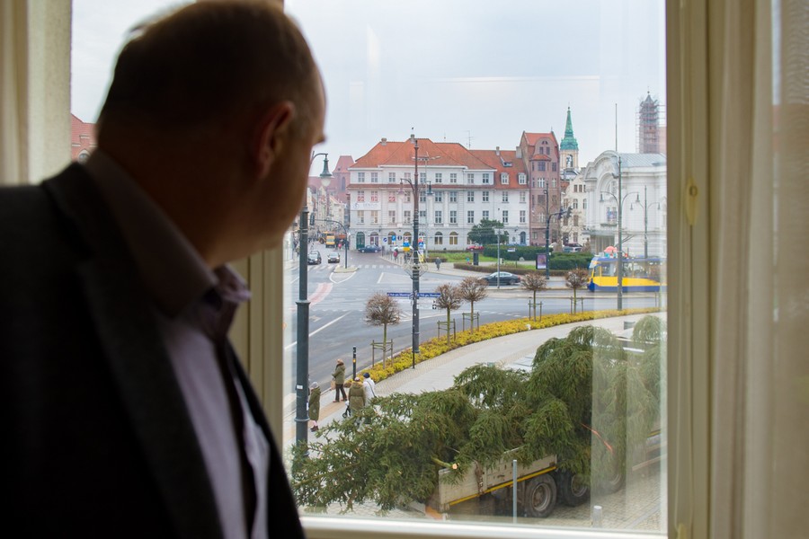 Choinka przed Urzędem Marszałkowskim w Toruniu, fot. Łukasz Piecyk Wyjątkowa choinka przed Urzędem Marszałkowskim Drukuj
