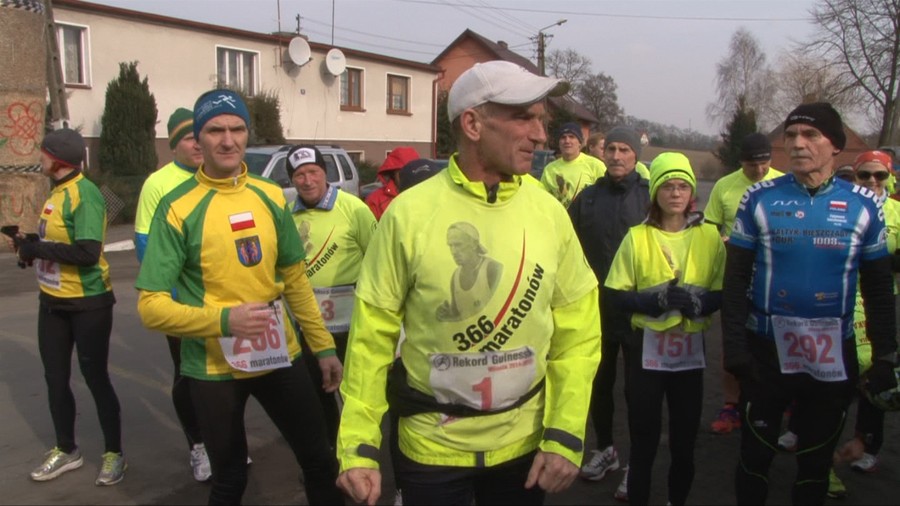 Nie narzekam. Kontuzje mnie – odpukać! – omijają, a prawdziwą motywacją i wsparciem do podejmowania wysiłku są kibice i sympatycy biegania. Formuła projektu 366 maratonów w 366 dni zakłada współuczestnictwo wszystkich chętnych biegaczy. Codziennie biegam po pętli na terenie gminy Więcbork, wokół mojej wsi Wituni. Biegamy po siedmiokilometrowej pętli i w zależności od chęci i sił fizycznych można ze mną przebiec od siedmiu kilometrów do maratonu włącznie. Muszę przyznać, że coraz więcej amatorów joggingu przyjeżdża by mi towarzyszyć, zjeżdżają z całej Polski. Była na przykład ekipa z Bełchatowa, nie brakuje też gości zagranicznych. To fajny gest solidarności i poparcia, dzięki takim ludziom nie miałem jeszcze chwili zwątpienia.