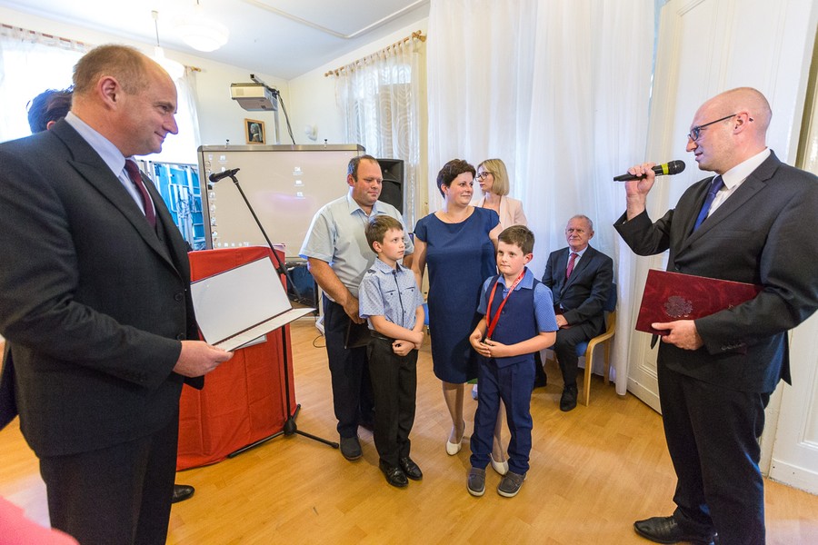 Podczas uroczystej sesji Rady Gminy Unisław marszałek Piotr Całbecki wspólnie z wójtem gminy Jakubem Danielewiczem wręczyli nagrody i gratulacje wicemistrzowi świata w warcabach Dawidowi Gotowskiemu oraz jego bratu Filipowi Gotowskiemu. Ministerialną odznakę „Za zasługi dla ochrony zdrowia” odebrał też z rąk marszałka i wójta kierownik Gminnego Ośrodka Zdrowia w Unisławiu Zbigniew Maniszewski.