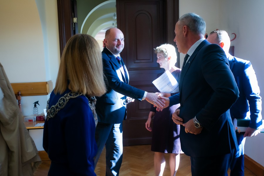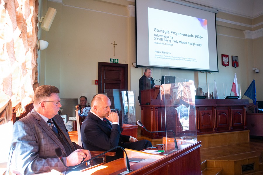 Marszałek Piotr Całbecki i wicemarszałek Zbigniew Ostrowski uczestniczyli, na zaproszenie prezydenta Rafała Bruskiego, w poniedziałkowej (7 września) nadzwyczajnej sesji Rady Miasta Bydgoszczy poświęconej Strategii rozwoju województwa 2030 + oraz modelowi funkcjonowania Zintegrowanych Inwestycji Terytorialnych (ZIT) w perspektywie 2021-2027. Samorząd województwa proponuje władzom miasta mechanizm pozwalający na wykorzystanie potencjału obu stolic województwa dla realizacji interesów i celów rozwojowych całego regionu.