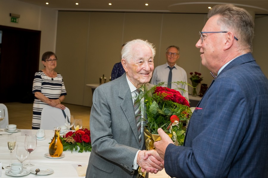 Zdzisław Tabisz swoje setne urodziny obchodził 13 czerwca. Podczas rodzinnej uroczystości odwiedził go wicemarszałek Zbigniew Ostrowski, wręczając medal Unitas Durat. Pan Zdzisław urodził się na Podkarpaciu, lecz z Kujawami i Pomorzem jest związany jeszcze od dzieciństwa. Wybuch II wojny światowej przerwał jego edukację i był zmuszony zająć się pracami fizycznymi takimi jak kopanie torfu, żniwa czy praca w cukrowni. Po ukończeniu liceum w 1946 roku podjął studia na Politechnice Wrocławskiej, które zakończył z dyplomem magistra nauk technicznych inżyniera elektryka i rozpoczął staż zawodowy. W 1953 roku poślubił Urszulę, z którą powrócił z południowej Polski i osiedlił się na stałe w Bydgoszczy. Para wychowała dwoje dzieci. Pan Zdzisław pracował w bydgoskiej Okręgowej Dyspozycji Mocy aż do emerytury, był niejednokrotnie doceniany w branży elektroenergetyki. Pełny biogram. Życiorys pana Zdzisława napisany przez niego własnoręcznie.