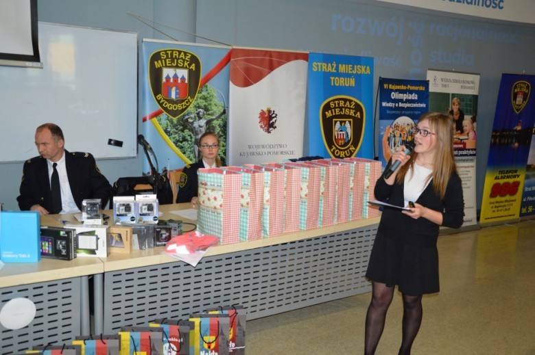 Zwycięzcą Olimpiady okazała się Pani Marta Sternicka z Zespołu Szkół nr 3 w Rypinie, która w swojej pracy przede wszystkim skoncentrowała się na przeciwdziałaniu przemocy i agresji wśród młodych osób. Finalistka otrzymała indeks ufundowany przez Wyższą Szkołę Bankową w Toruniu, laptopa oraz cyfrowy aparat fotograficzny – nagrodę Marszałka Województwa Kujawsko-Pomorskiego. Pozostali uczestnicy otrzymali laptopy, notebooki, tablety, kamery sportowe oraz smartwatche.