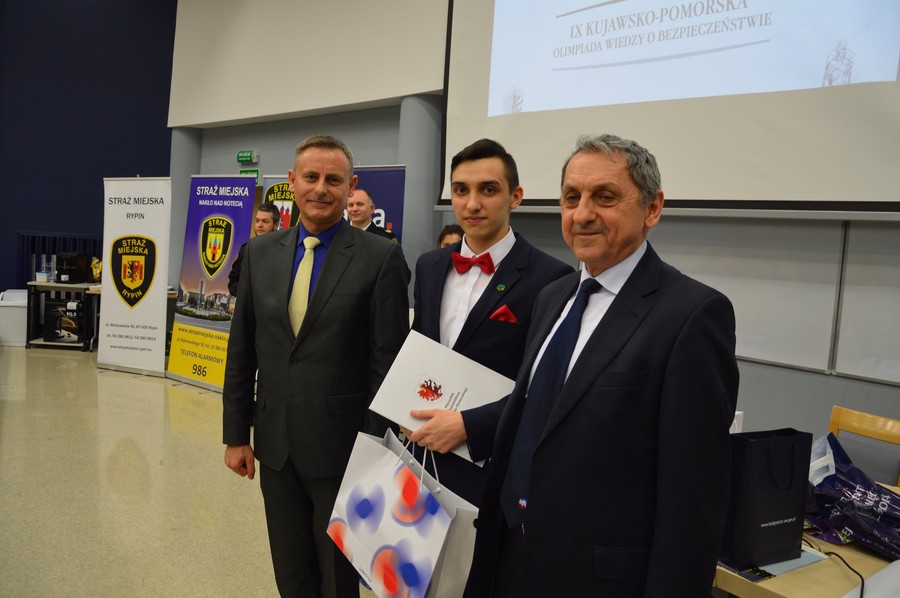 W trakcie III etapu laureaci, którzy zostali wyłonieni z ok. 1000 uczniów z naszego województwa musiało przedstawić przed Komisją Konkursową analizę poziomu bezpieczeństwa miejscowości/ dzielnicy, w której mieszkają na co dzień, a także wykazać się pomysłem na poprawę istniejącego stanu bezpieczeństwa. Zwycięzcą Olimpiady okazał się uczeń Zespołu Szkół Technicznych w Kcyni – Tomasz Wiejaczka, który otrzymał indeks Wyższej Szkoły Bankowej oraz nagrodę specjalną Marszałka Województwa – cyfrowy aparat fotograficzny. Urząd Marszałkowski w Toruniu od I edycji włączył się w organizację i wsparcie olimpiady, a Marszałek Województwa co roku obejmuję ją patronatem honorowym. W imieniu Marszałka Województwa w Komisji Konkursowej zasiadał Tomasz Grendzicki Główny Specjalista Biura Spraw Obronnych i Bezpieczeństwa Publicznego, który wspólnie z Eugeniuszem Lalą Kierownikiem Biura wręczyli w imieniu Marszałka nagrodę specjalną.