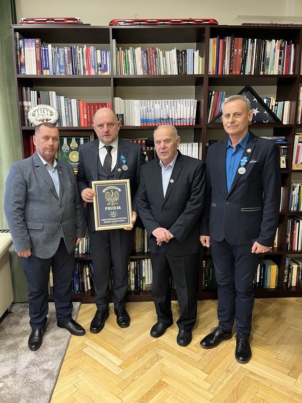 Wczoraj (22 stycznia br.) Marszałek Województwa spotkał się z Andrzejem Woźniakiem Prezydentem Mundurowego Klubu Motorowego RP i Jarosławem Dąbrowskim Prezesem Mundurowego Klubu Motorowego RP Region Mazowsze, gdzie podsumowane zostały wspólne działania w 2024 r. na rzecz poprawy bezpieczeństwa ruchu drogowego oraz imprezy integracyjne służb mundurowych. Omówiono również możliwość kontunuowania dalszej współpracy w przedmiotowym zakresie w roku bieżącym. Miłym akcentem tej wizyty było uhonorowanie Piotra Całbeckiego Marszałka Województwa i Tomasza Grendzickiego Pełnomocnika ds. Ochrony Informacji Niejawnych Medalem 30-lecia Powstania Mundurowego Klubu Motorowego Rzeczypospolitej Polskiej.