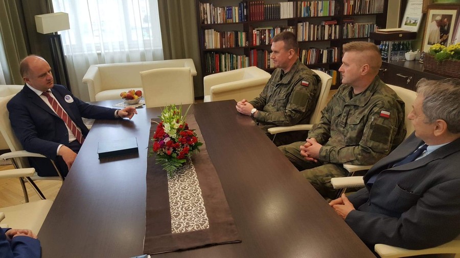 W dniu 9 maja br. w Urzędzie Marszałkowskim Województwa Kujawsko-Pomorskiego odbyło się spotkanie Marszałka Województwa pana Piotra Całbeckiego z Szefem Wojewódzkiego Sztabu Wojskowego płk Tomaszem Dominikowskim oraz Komendantem Wojskowej Komendy Uzupełnień w Toruniu ppłk Mariuszem Marciniakiem.