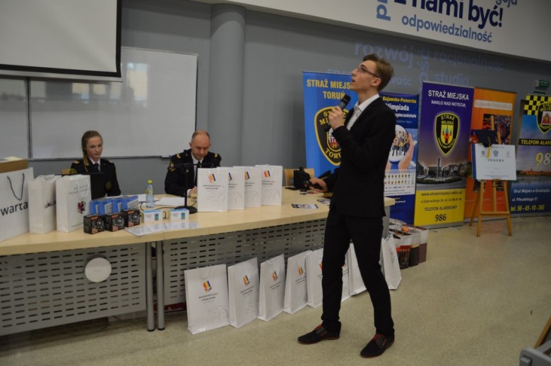 W trakcie III etapu laureaci, którzy zostali wyłonieni z ponad 1000 uczniów z naszego województwa musiało przedstawić przed Komisją Konkursową analizę poziomu bezpieczeństwa dzielnicy, w której mieszkają na co dzień, a także wykazać się pomysłem na poprawę istniejącego stanu rzeczy. Zwycięzcą Olimpiady okazała się Pani Marta Michalska z Zespołu Szkół nr 3 w Rypinie, która w swojej pracy skoncentrowała się na ekologii. Przedstawiła swoje działania mające poprawić ekologiczny poziom życia w swoim miejscu zamieszkania poprzez, między innymi, spotkania eko-edukacyjne z dziećmi i młodzieżą. Finalistka otrzymała indeks ufundowany przez Wyższą Szkołę Bankową w Toruniu, laptopa oraz nagrodę Marszałka Województwa – cyfrowy aparat fotograficzny. Pozostali uczestnicy otrzymali laptopy, notebooki, tablety, kamery sportowe oraz smartwatche. W imieniu Marszałka Województwa w Komisji Konkursowej zasiadał Tomasz Grendzicki Główny Specjalista Biura Obronności i Bezpieczeństwa Publicznego, który również wręczył nagrodę specjalną dla zwycięzcy.