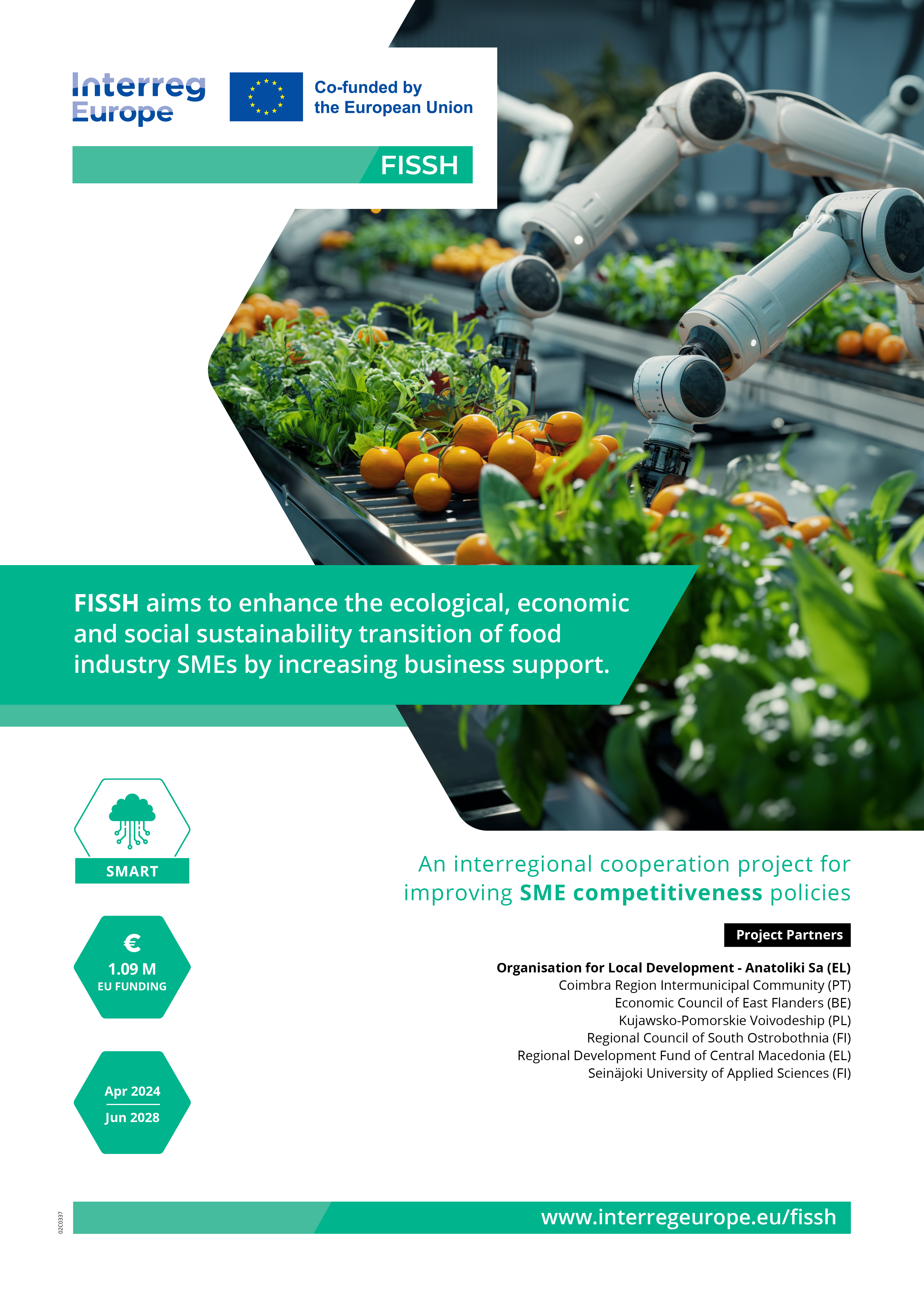 Głównym celem projektu FISSH (Wsparcie i pomoc dla MŚP z branży spożywczej w zakresie zrównoważonego rozwoju) jest poprawa wdrażania polityk regionalnych w regionach partnerskich poprzez międzyregionalną wymianę wiedzy i dobrych praktyk. Projekt koncentruje się na wspieraniu transformacji MŚP w branży spożywczej w kierunku zrównoważonego rozwoju ekologicznego, ekonomicznego i społecznego.