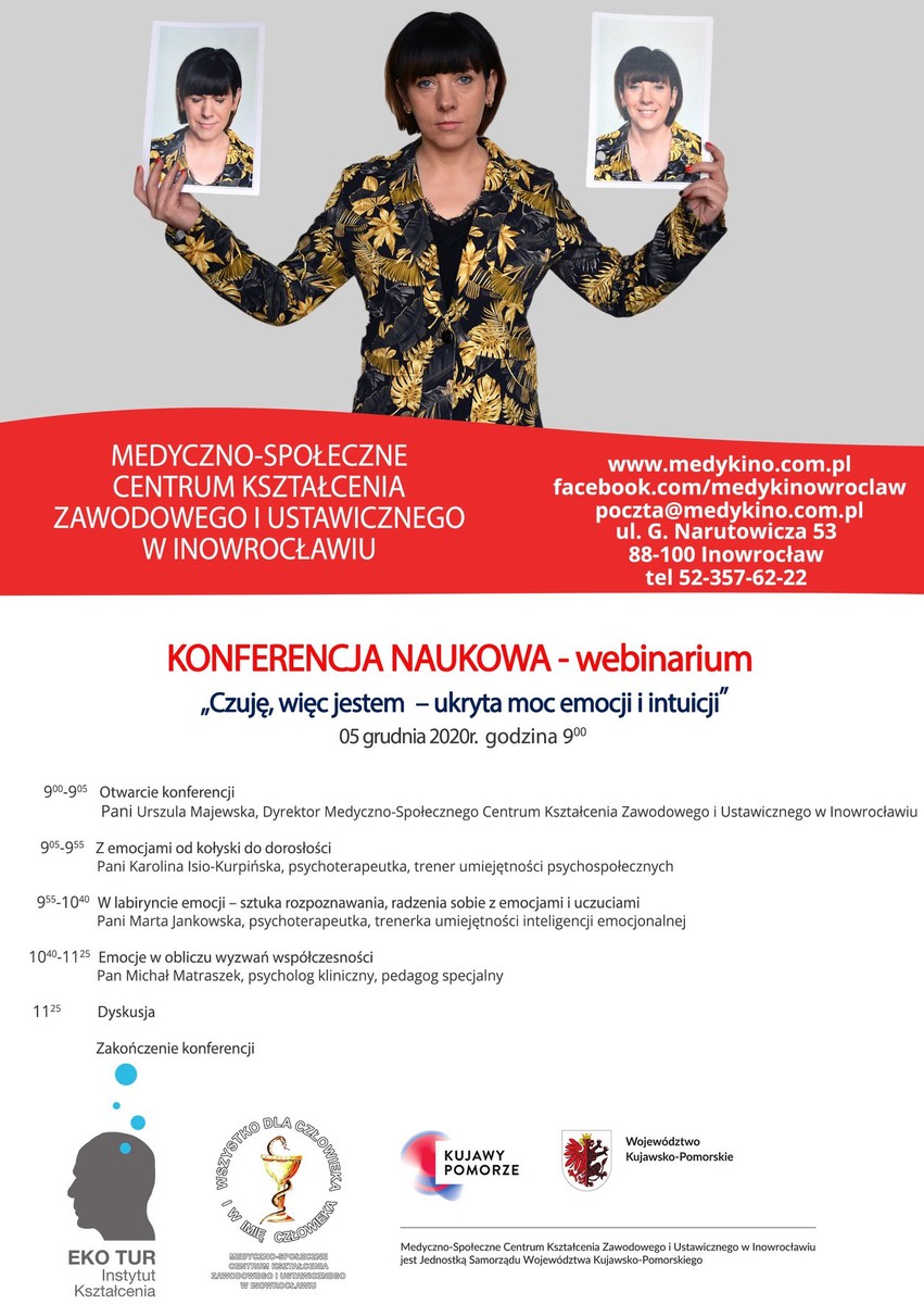 Na te i wiele innych pytań poszukamy odpowiedzi w trakcie konferencji naukowej Czuję, więc jestem – ukryta moc emocji i intuicji organizowanej przez Medyczno-Społeczne Centrum Kształcenia Zawodowego i Ustawicznego w Inowrocławiu.