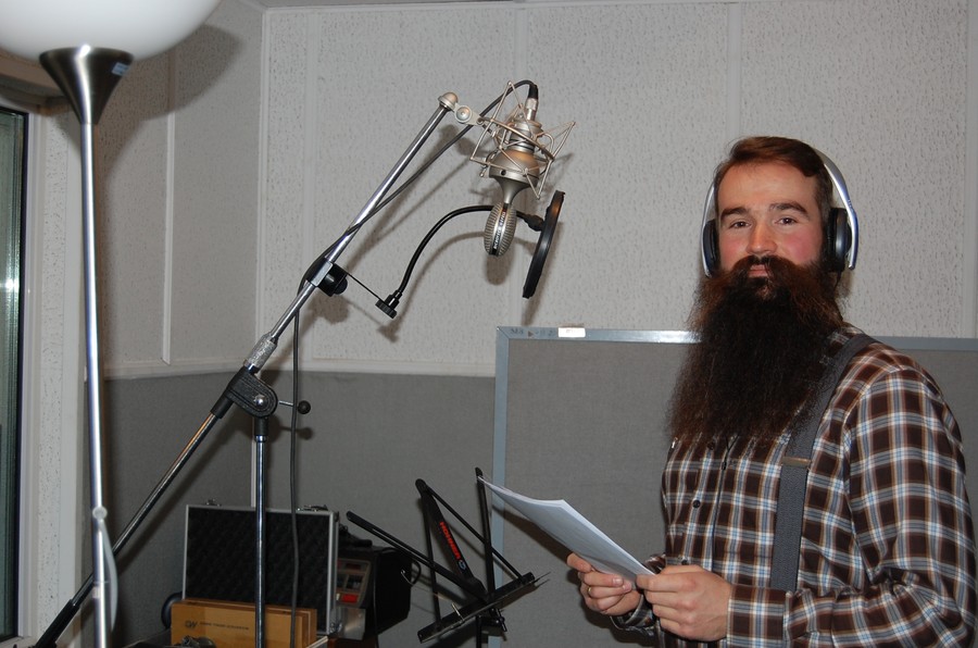 Autor innowacji pedagogicznej Adam Bojar na nagraniu w studiu