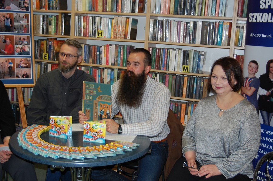 Audiobook został przygotowany w oparciu o książkę pt. „Cztery strony czasu” autorstwa pani Iwony Chmielewskiej – uznanej na świecie i utytułowanej autorki i ilustratorki książek dla dzieci i dorosłych z naszego miasta. Autorka zgodziła się użyczyć praw autorskich na potrzeby realizacji niniejszego przedsięwzięcia. Nagranie jest tym bardziej wyjątkowe, że akcja opowieści rozgrywa się w Toruniu, a główną bohaterką jest ratuszowa wieża z zegarami skierowanymi w cztery strony świata. Dzięki nagraniu wykonanym w studio rozgłośni radiowej „Radia Sfera” i współpracy z firmą fonograficzną Visual Media Records z Bydgoszczy projekt zyskał wszelkie znamiona profesjonalnego wydawnictwa.