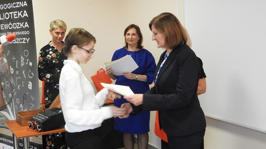 Nieznaną historię Mariana Rejewskiego przybliżył prof. Robert Gawłowski, autor książki „Jestem tym, który rozszyfrował Enigmę”. Jego wystąpienie zakończył szybki test dla zgromadzonych uczniów. Zwycięzcami zostali członkowie zespołu z Liceum Ogólnokształcącego w Szubinie.
