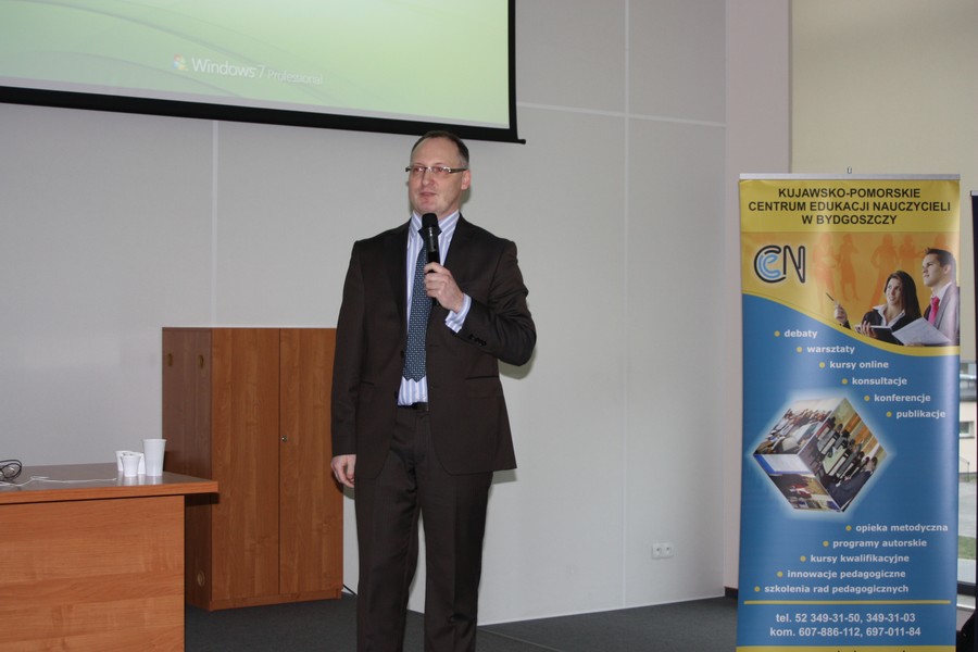 W konferencji uczestniczyli dyrektorzy gimnazjów województwa kujawsko-pomorskiego oraz zaproszeni goście m.in. Krzysztof Nowakowski kierownik Biura Projektu „E-usługi” w Urzędzie Marszałkowskim w Toruniu, który przedstawił cele i założenia projektu.