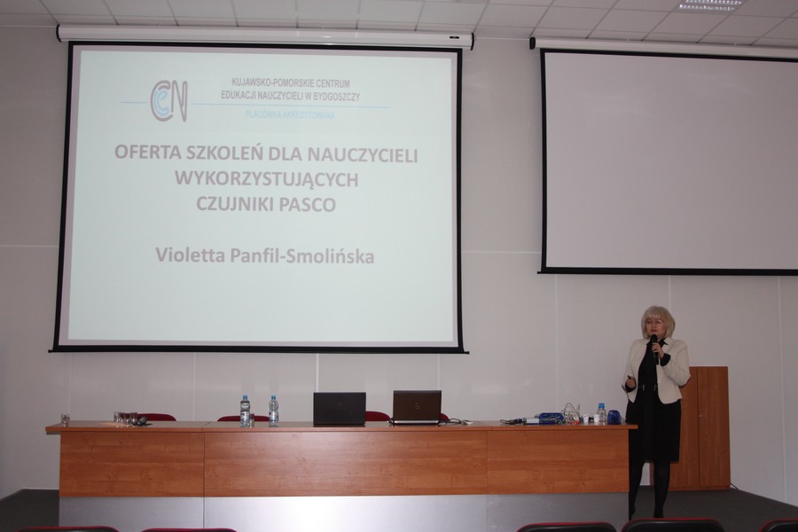Kujawsko-Pomorskie Centrum Edukacji Nauczycieli w Bydgoszczy zorganizowało konferencję upowszechniającą projekt: „E-Usługi e-Organizacja pakiet rozwiązań informatycznych dla jednostek organizacyjnych województwa kujawsko-pomorskiego”, w ramach którego została utworzona stacjonarna pracownia oraz 5 mobilnych pracowni dydaktycznych umożliwiających prowadzenie w szkołach ciekawych zajęć z wykorzystaniem czujników PASCO – narzędzi do praktycznej nauki przedmiotów przyrodniczych.