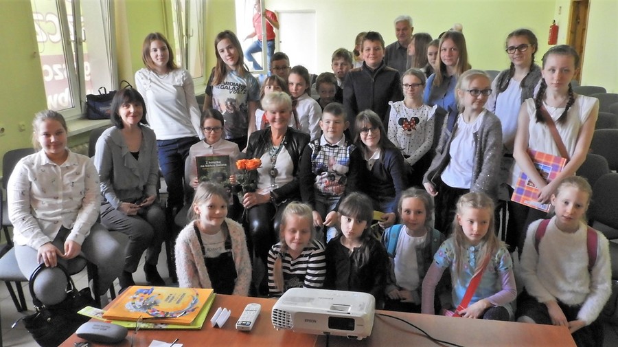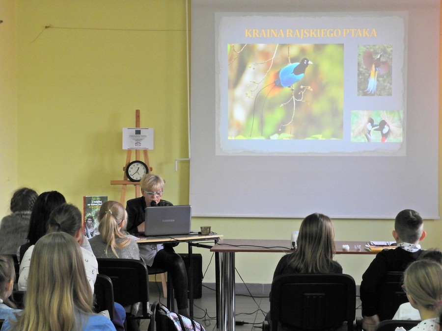 Po konkursie chętni uczestnicy z rodzicami i opiekunami wzięli udział w prelekcji Jolanty Niwińskiej, inicjatorki i realizatorki projektów popularyzujących czytelnictwo, która opowiadała o swoich czytelniczych wyprawach i najnowszej książce.