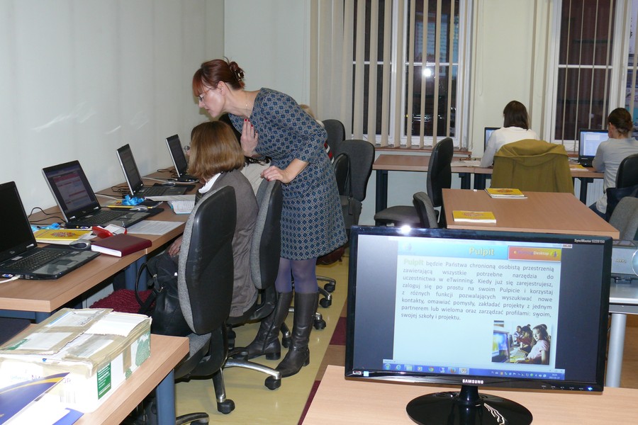 Podczas sesji warsztatowej przy komputerach odbyła się rejestracja szkoły/nauczyciela w programie eTwinning.