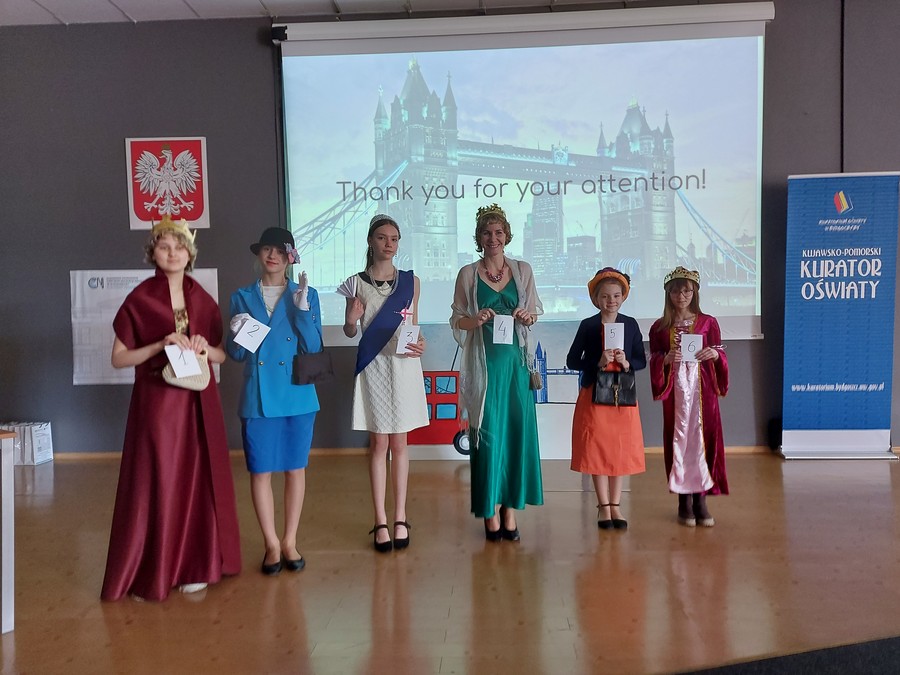 Finałowy etap konkursu ,,Open your mind to culture'' - portrety Królowej Elzbiety II wykonane przez uczniów SP Białe BłotaFinałowy etap konkursu "Open your mind to culture''Finałowy etap konkursu ,,Open your mind to culture'' - przebranie za królową Elżbietę IIFinałowy etap konkursu "Open your mind to culture''Finałowy etap konkursu "Open your mind to culture''