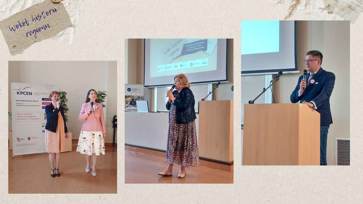 Jury konkursu przyznało trzy równorzędne nagrody główne, które wręczyli pani wicekurator Beata Sikorska oraz dyrektor KPCEN w Toruniu Sławomir Żebrowski, a także cztery wyróżnienia, które wręczyły dr hab. Inga Głuszek, prof. UMK – prodziekan ds. nauki i współpracy z otoczeniem zewnętrznym z Wydziału Nauk Historycznych oraz Kamila Łajczak, zastępca dyrektora Departamentu Edukacji Urzędu Marszałkowskiego Województwa Kujawsko-Pomorskiego w Toruniu.