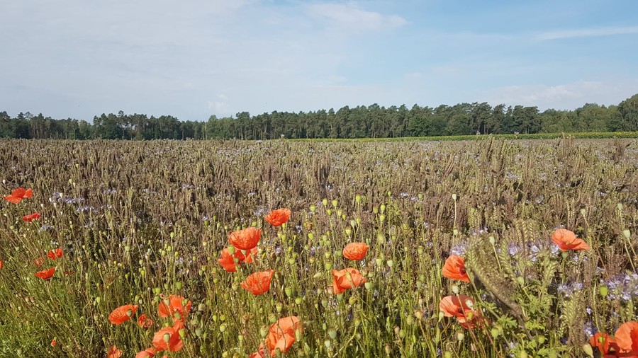 W początkowym odcinku trasy (wyruszyliśmy z Dobrcza w kierunku Jeziora Borówno) towarzyszyły nam przede wszystkim pola dojrzewającego rzepaku i pszenicy, miejscami przeplatane uprawą słoneczników lub buraków. Dopiero w pobliżu Jeziora Borówno, w obniżeniu wytopiskowym, mogliśmy schronić się przed upalnym lipcowym słońcem w zbawiennym cieniu lasu mieszanego.