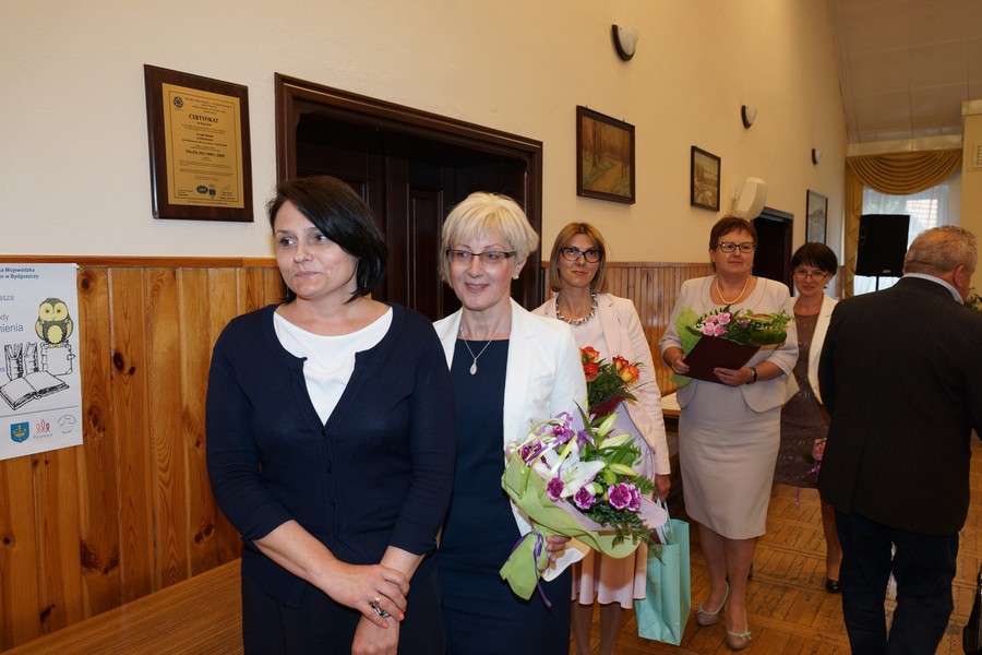 Ważnym punktem programu było wręczenie nagród w zorganizowanym z okazji jubileuszu konkursie na napisanie fraszki o tematyce bibliotecznej Biblioteka – miejsce niezwykłe. Otrzymały je: czytelniczka Pedagogicznej Biblioteki w Koronowie – pani Marta Perlik oraz pracownica Urzędu Miejskiego w Koronowie – pani Magdalena Tabasz.