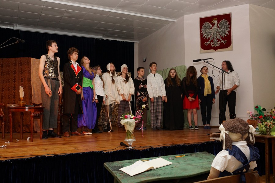 Po oficjalnej części wszyscy mieli okazję obejrzeć niezwykle ciekawe przedstawienie przygotowane przez grupę teatralną Zespołu Szkół im. Leona Wyczółkowskiego we Wtelnie pod kierunkiem polonisty pana Jarosława Sułkowskiego. Młodzi aktorzy brawurowo zagrali kompilację fragmentów kilku klasycznych utworów z literatury światowej.