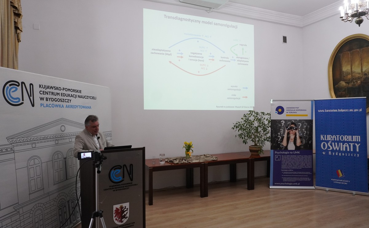 Zebrani na sali oraz przed monitorami na platformie YouTube mieli okazję wysłuchać prelekcji dr. Marka Wypycha z Instytutu Biologii Doświadczalnej PAN w Warszawie pt. „Dlaczego niektórzy z nas odkładają wiele spraw na później, i czy badania mózgu pozwolą opracować lepsze metody radzenia sobie z prokrastynacją?”.