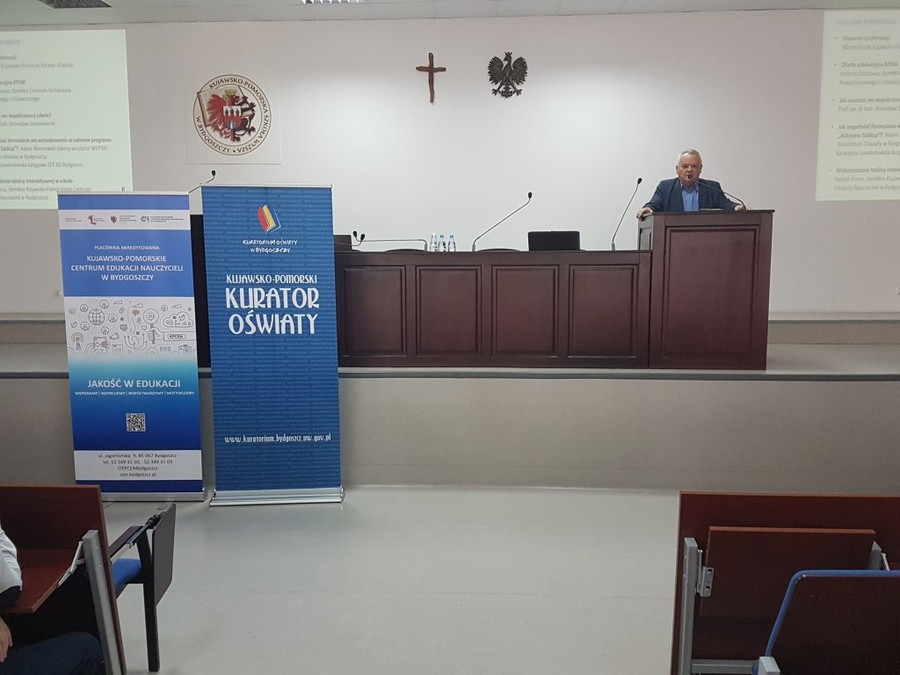 Konferencję otworzył Marek Gralik Kujawsko-Pomorski Kurator Oświaty, który w wystąpieniu inaugurującym wskazał na ważną rolę cyfrowego nauczania oraz pracy z nowoczesnymi technologiami.
