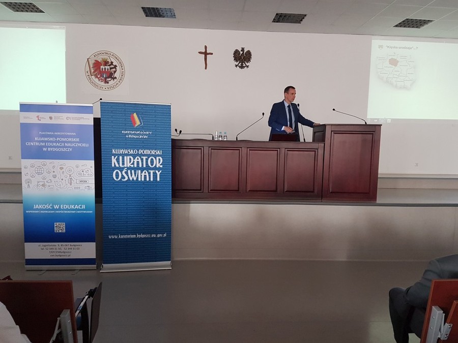 7 listopada 2018 roku w sali konferencyjnej Kujawsko-Pomorskiej Szkoły Wyższej w Bydgoszczy odbyła się konferencja zatytułowana Nauczać cyfrowo, czyli jak? Organizatorem przedsięwzięcia, w którym wzięło udział około 250 dyrektorów i nauczycieli szkół oraz placówek naszego województwa, było Kuratorium Oświaty oraz Kujawsko-Pomorskie Centrum Edukacji Nauczycieli w Bydgoszczy.