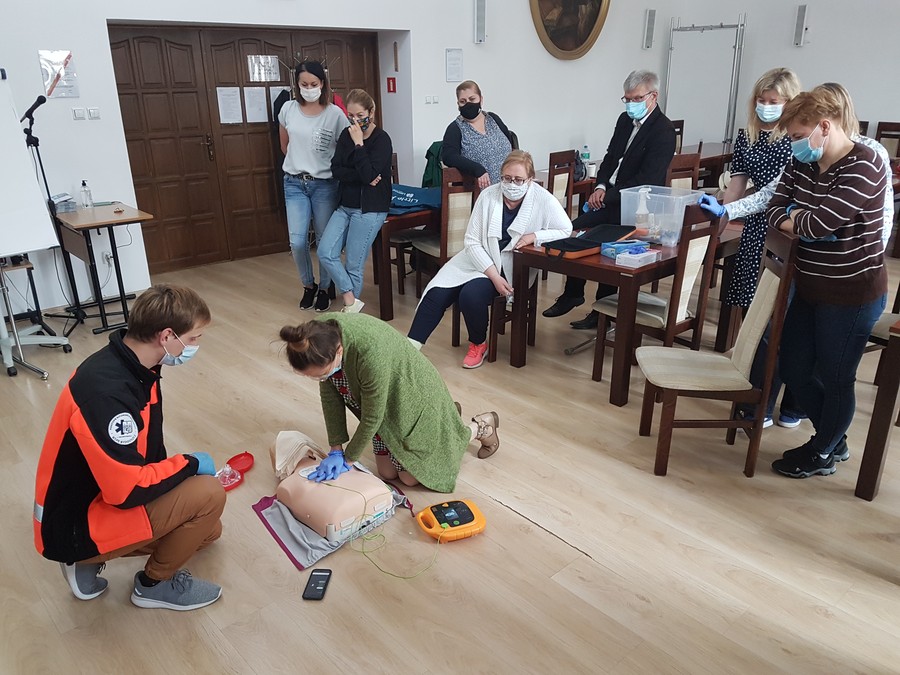 Posługiwanie się defibrylatoremRatownik Maciej Romaniuk demonstruje przebieg resuscytacji