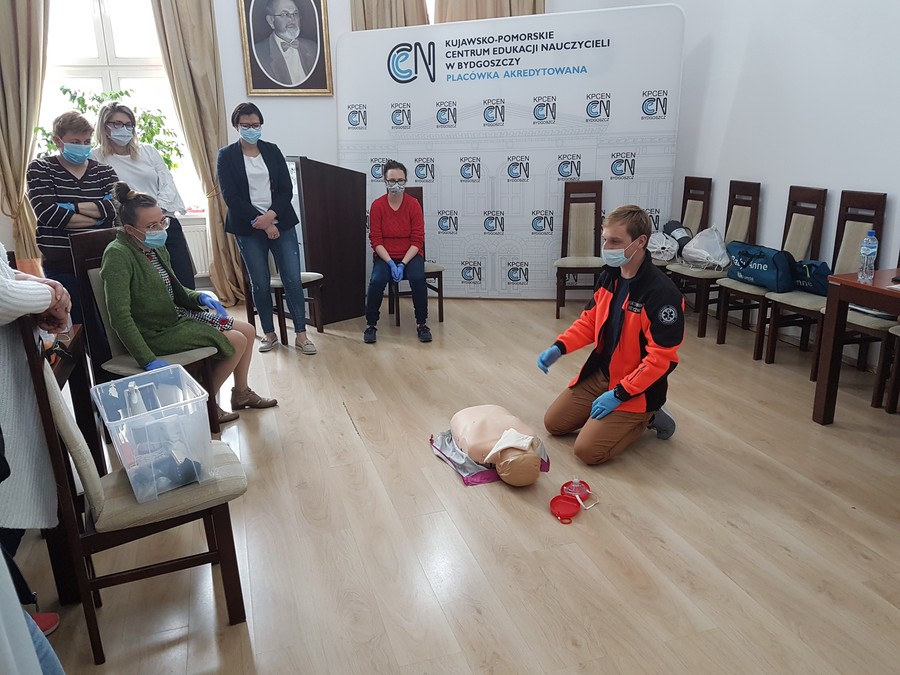 W dniach 17–22 maja 2021 roku w  Kujawsko-Pomorskim Centrum Edukacji Nauczycieli w Bydgoszczy po raz kolejny przeprowadzono  10-godzinny  „Kurs na kierownika wypoczynku”.Program kursu realizowany był w formie wykładów i zajęć praktycznych na podstawie  Załącznika nr 7 do Rozporządzenia Ministra Edukacji Narodowej z dnia 30 marca 2016 r. w sprawie wypoczynku dzieci i młodzieży.  Ze względu na pandemię  zajęcia odbywały się  w formie mieszanej – wykłady zdalnie, a część praktyczna stacjonarnie, z zachowaniem środków bezpieczeństwa sanitarnego. Kurs realizowało czterech specjalistów posiadających odpowiednie uprawnienia do prowadzenia tego typu szkoleń (w tym kierownik zespołu ratunkowego Wojewódzkiej Stacji Pogotowia Ratunkowego w Bydgoszczy).