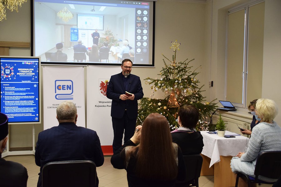 Seminarium bożonarodzeniowe „Regionalizm i tradycja ponad czasem” w Kujawsko-Pomorskim Centrum Edukacji Nauczycieli we Włocławku odbywa się na kilka dni przed grudniowymi świętami. W tym roku zostało przeprowadzone 16 grudnia w formie hybrydowej. Jest ważne, aby to wyjątkowe wydarzenie miało międzykulturowy charakter, dlatego zaproszeni w tym roku goście i prelegenci reprezentowali różne narodowości i religie.
