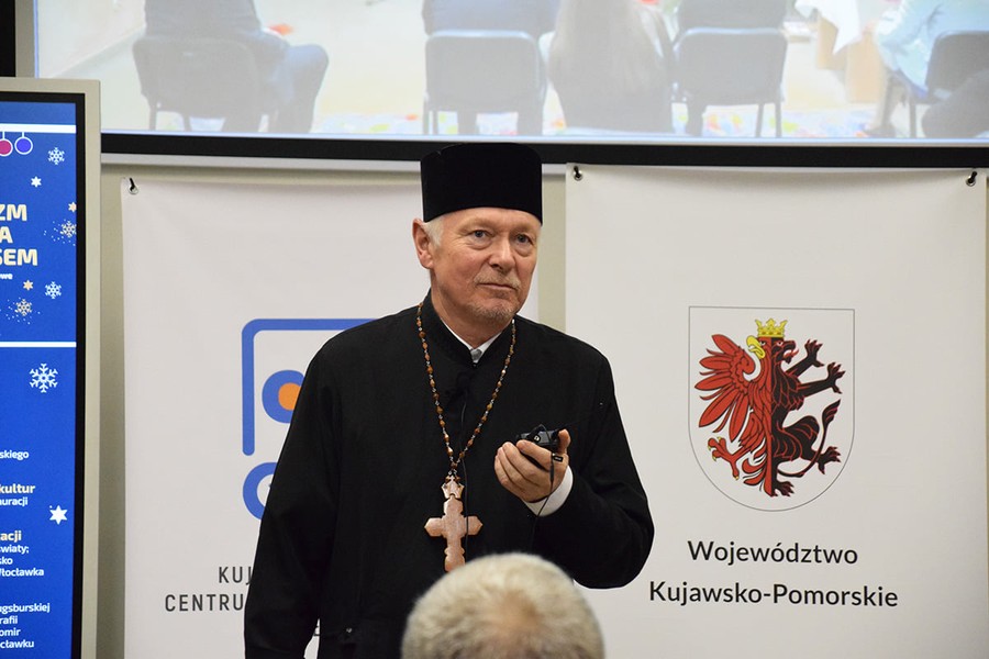 odwołał się do uczucia radości związanego z Bożym Narodzeniem. Przygotowanie rozpoczyna w kalendarzu prawosławnym 40-dniowy post. Święta te przypadają 6 i 7 stycznia, ale w województwie kujawsko-pomorskim, gdzie mieszkają Bułgarzy, Grecy oraz prawosławni Polakcy jest wiele rodzin mieszanych i święta obchodzone są podwójnie, a więc radość jest podwójna. Liturgia oparta jest na radości, która przelewa się w serca i dusze wiernych. Wszechogarniającej radości obiegającej cały kosmos życzył ksiądz Hajduczenia uczestnikom spotkania.