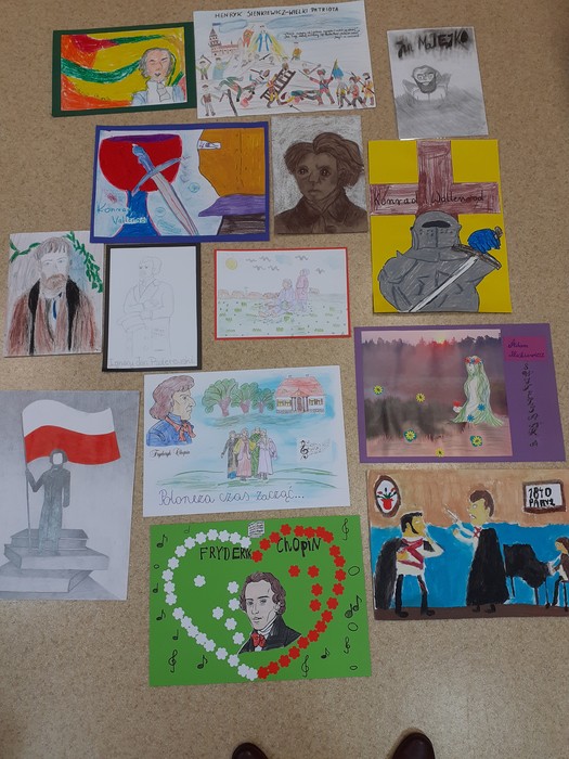 Na konkurs napłynęło 68 prac z 8 placówek. Uczestnicy nawiązywali do twórczości i działalności wielkich Polaków takich jak:. Adam Mickiewicz, Fryderyk Chopin, Juliusz Słowacki, Kamil Cyprian Norwid, Jan Matejko, Ignacy Jan Paderewski. Niektóre prace były niezwykle przejmujące i wymowne. Na uwagę zasługuje duża różnorodność zastosowanych technik plastycznych, ciekawa interpretacja tematu oraz staranność i estetyka wykonanych prac.