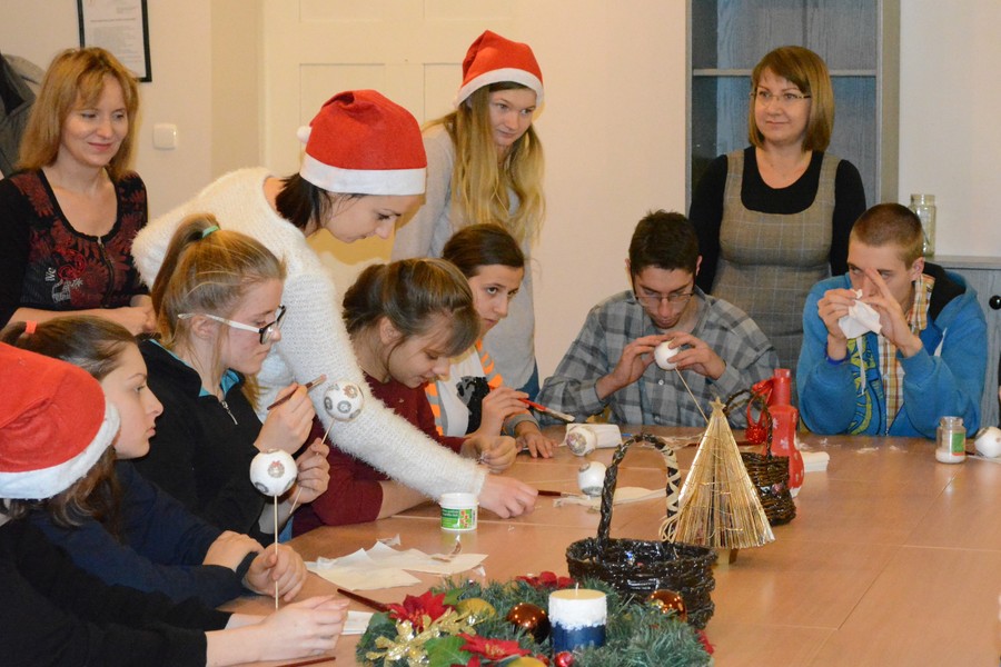 Spotkanie upłynęło pod znakiem wspólnego kolędowania. Nie zabrakło też twórczych atrakcji takich jak wykonywanie ozdób świątecznych. Nasi Goście, wraz z uczniami Medyka, przygotowali piękne bombki choinkowe.