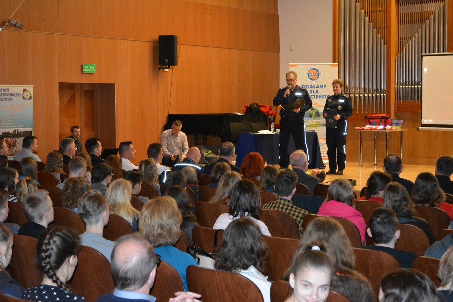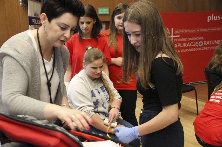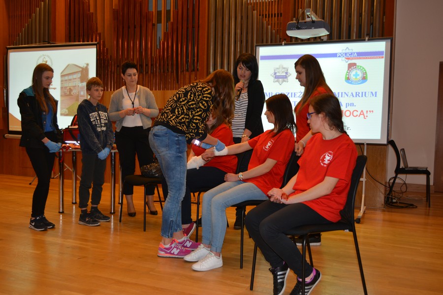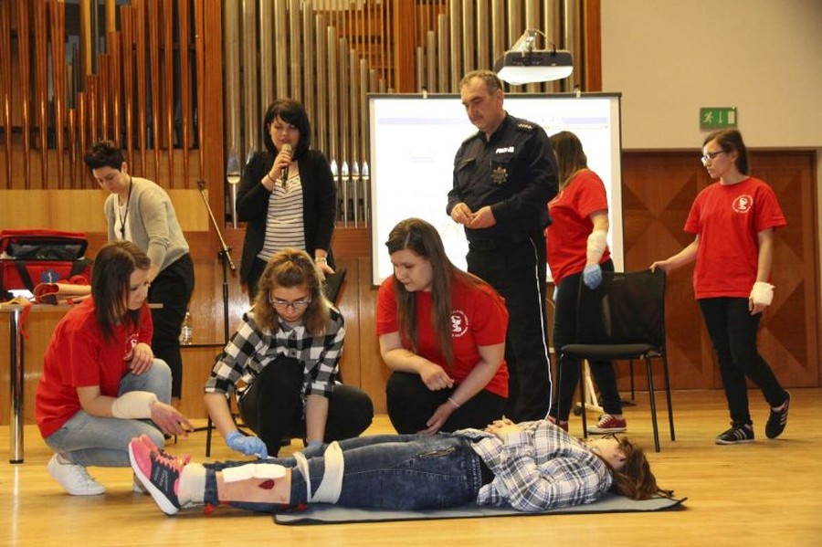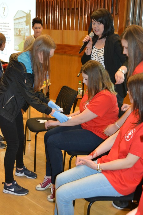 Uczennice Weronika Prill, Joanna, Pietruszka, Melina Lach oraz Katarzyna Waszkiewicz  pod kierunkiem nauczycieli  Agaty Pasternak i Moniki Kurzawy omówiły zasady  udzielania  pierwszej  pomocy i zaprezentowały rodzaje ran oraz obrażeń, które zdarzają się najczęściej.  Młodzież  aktywnie uczestniczyła w panelu warsztatowym. Podczas seminarium, gimnazjaliści brali  udział w wielu pokazach i ćwiczeniach, co dało im możliwość przyswajania potrzebnej wiedzy.
