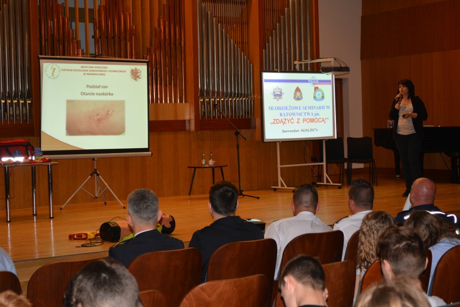 Każdy z nas może  być świadkiem zdarzenia i reagować niosąc pomoc. Trzeba jednak wiedzieć, jak działać w tym zakresie. Z myślą o bezpieczeństwie i edukacji we wtorek 4 kwietnia 2017  roku  Medyczno-Społecznego Centrum Kształcenia Zawodowego i Ustawicznego było współorganizatorem wraz z Komendą Powiatową Policji w Inowrocławiu Młodzieżowego Seminarium Ratownictwa „Zdążyć z pomocą”.