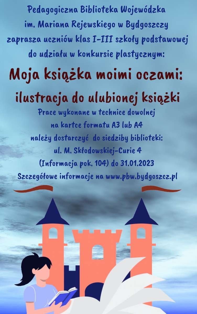 Pedagogiczna Biblioteka Wojewódzka im. Mariana Rejewskiego w Bydgoszczy zachęca młodych czytelników do tworzenia własnej wersji scen, sytuacji, zdarzeń z ulubionej książki, do wcielenia się w rolę ilustratora. Tematy można czerpać z bajek, powieści dla dzieci, literatury fantasy, wierszy, opowiadań, opowieści o podróżach i zdarzeniach historycznych. Należy stworzyć pojedynczą ilustrację do wybranej sceny lub fragmentu książki.