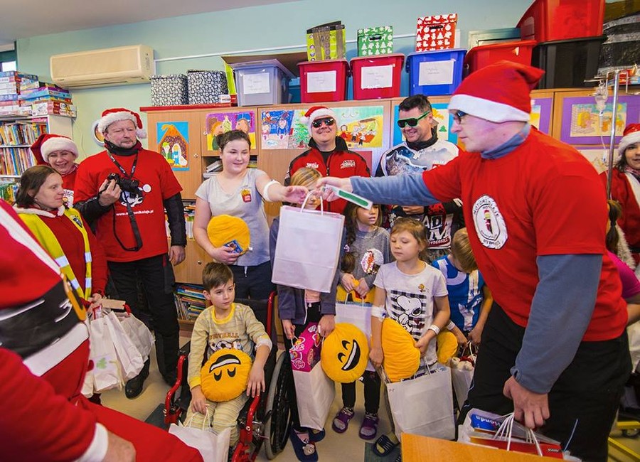 W te grudniowe dni staramy się zapewnić chorym dzieciom wiele atrakcji. Niezwykle miłym dniem stała się niedziela – 3 grudnia, ponieważ na wszystkie oddziały szpitalne Wojewódzkiego Szpitala Dziecięcego oraz Szpitala Uniwersyteckiego nr 1 przybyli niecodzienni goście – Motomikołaje.