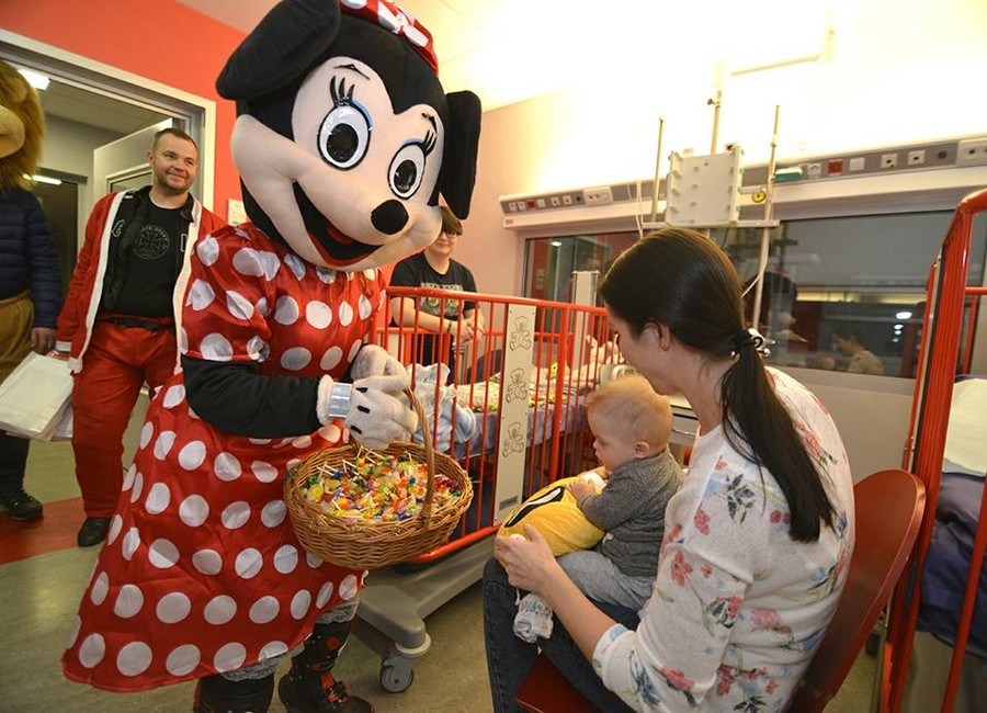 Ryk motocyklowych silników sprawił, że wszystkie dzieci podbiegły do szpitalnych okien i z ogromną radością wyczekiwały ogromnej rzeszy Mikołajów, Minionków, Myszek Miki, Lwa Leo i innych bajkowych postaci, które barwnym korowodem wędrowały po szpitalnych oddziałach obdarowując wszystkie dzieci upominkami, a  rodziców, nauczycieli i personel medyczny dobrym słowem, radością i pozytywną energią.